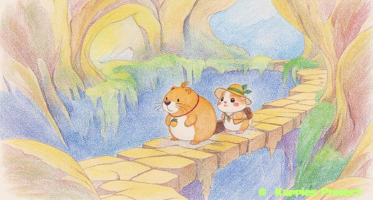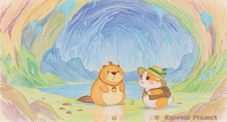 僕は探検家のモルちゃん🍀 カッピーを誘って鍾乳洞に来たよ